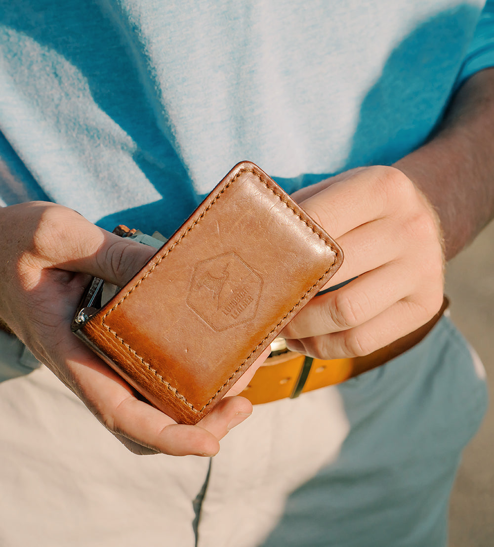 Crafted from genuine full-grain leather, our Players Wallet comes in a natural color. This wallet has a clean look and rugged durability. Choose the Standard two-fold design or add a credit card sleeve for extra versatility. Built to last and designed to age beautifully, this wallet is a reliable essential for everyday use.