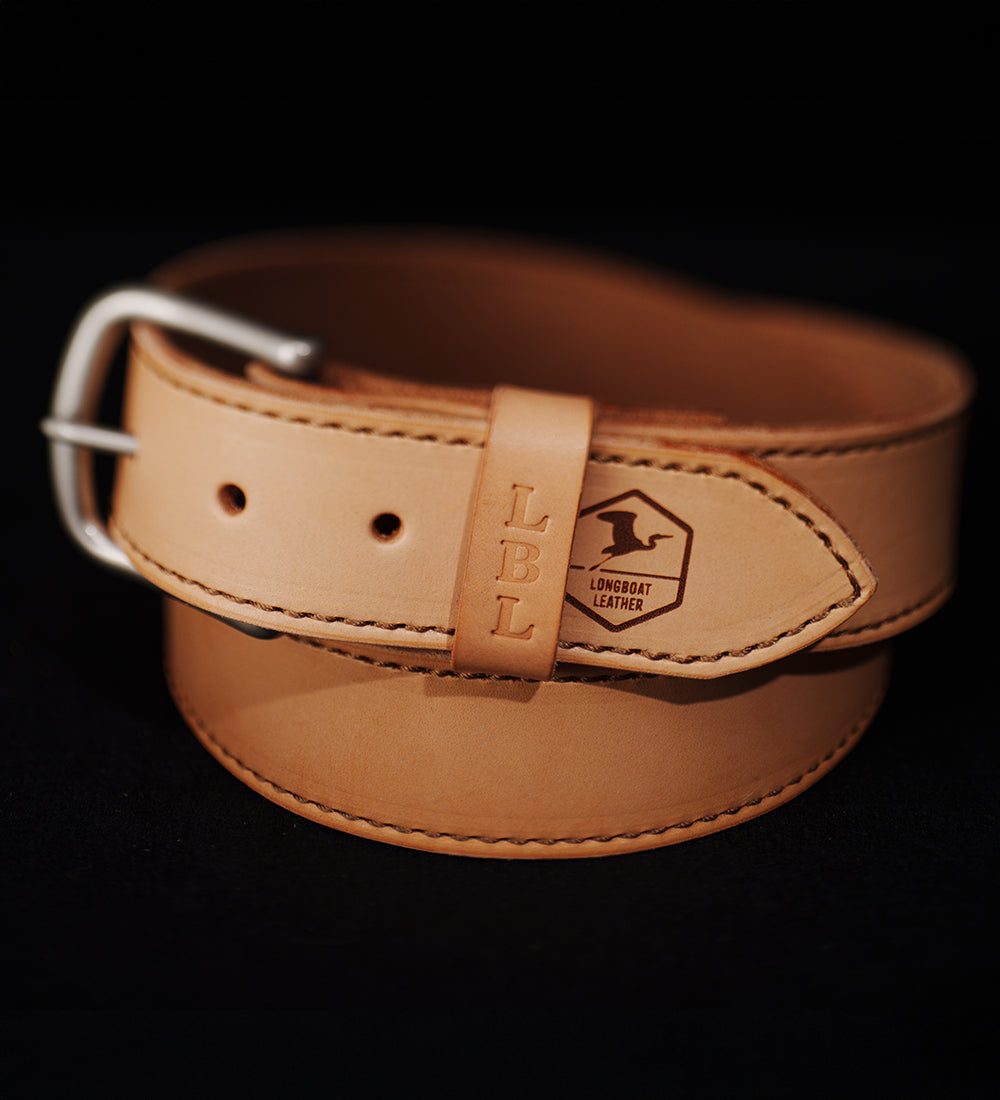 This natural leather belt elevates coastal style with refined craftsmanship. Made from light, natural full- grain leather, this 1 1/2-inch-wide belt features high-quality hand-stitched detailing along the edges, adding a polished and sophisticated touch. Paired with a brushed nickel buckle for a sleek, versatile finish, it’s the perfect combination of relaxed elegance and durability. Designed to age beautifully, the stitched Longboat Key is a timeless staple for those who value classic and artisanal quality.